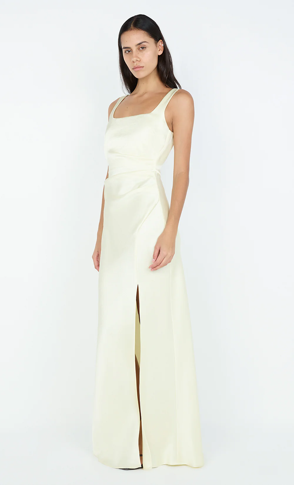 A timeless classic, the BEC + BRIDGE Dreamer Square Neck Dress is an easy to wear formal style that flatters all silhouettes. The maxi dress dress features a square neckline and a dramatic side leg split. The gathering detail around the waist and hips disguises any unwanted lines on the body.